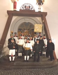 Mit der kleinen Parade erregten wir eine große Aufmerksamkeit. Nach einer Stärkung mit Bratwurst und Glühwein nahmen wir Aufstellung vor der Bühne, begrüßten herzlich die Christmarktbesucher und sangen gemeinsam das Steigerlied.