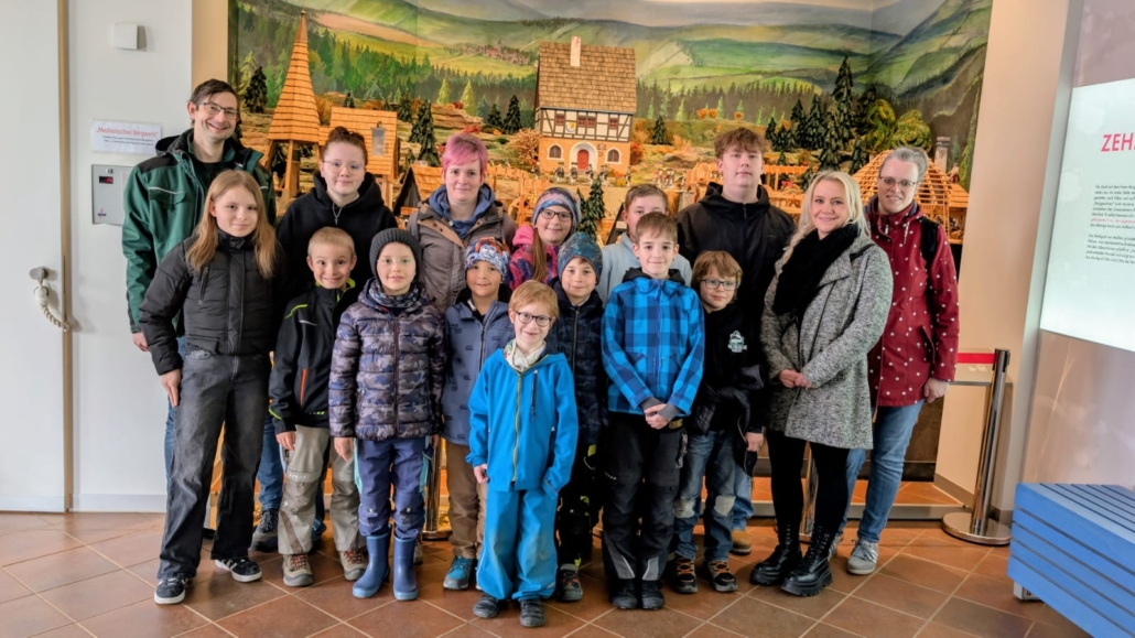 Zum Fachgruppentreffen im Monat März trafen sich die Mitglieder unserer Kinder- und Jugendgruppe auf dem Schacht „Reiche Zeche“ zur Befahrung der „Himmelfahrt Fundgrube“. Gemeinsam absolvierten die 17 Teilnehmer die etwa einstündige Entdecker Tour und bekamen dabei viel Wissenswertes über den Bergbau im Allgemeinen und den Freiberger Bergbau im Speziellen vermittelt.
