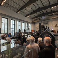 Pumpen- und Fahrkunst an einem Modell, das über ein kleines Wasserrad stilecht angetrieben wird. Den Abschluss bildete die gruppenweise Seilfahrt zurück an die Tagesoberfläche und das Auskleiden in der Kaue.